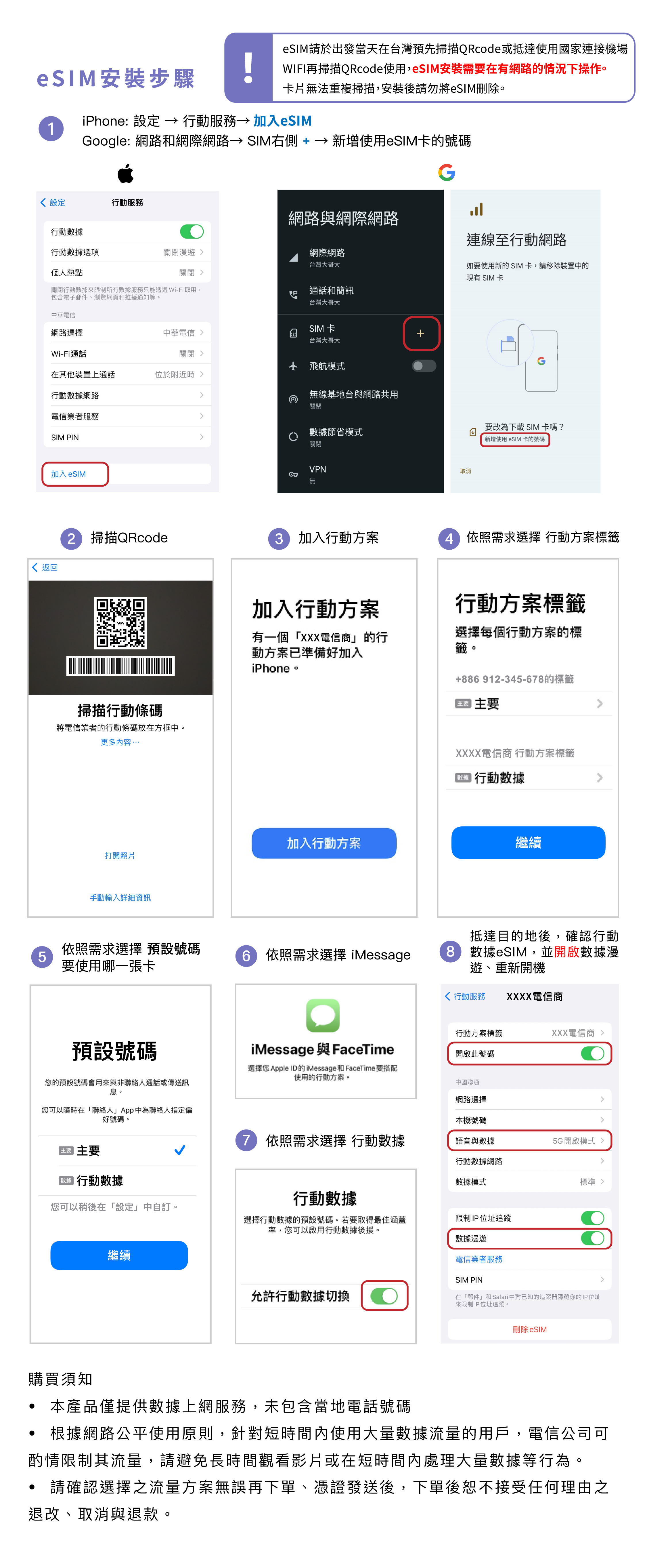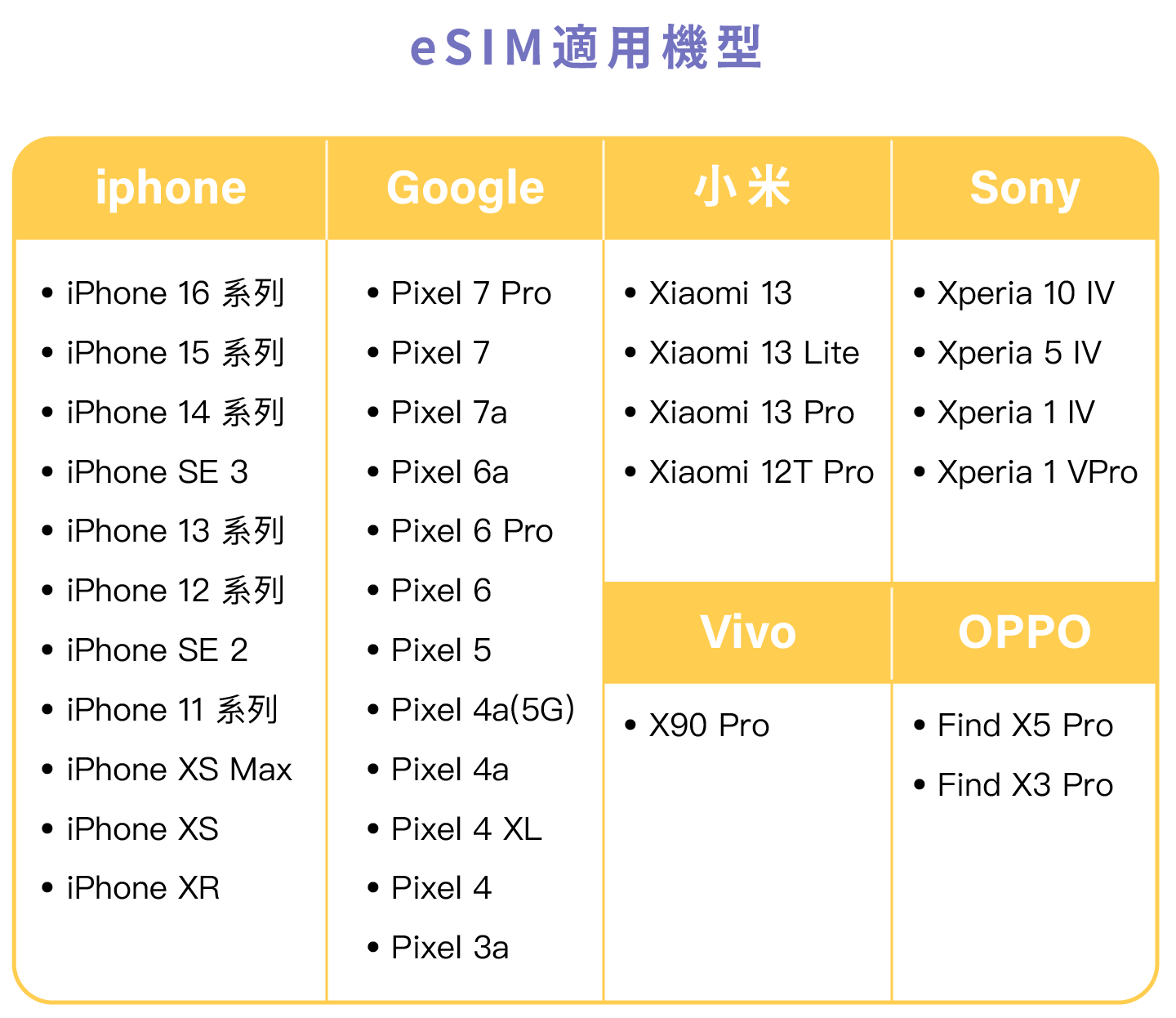 • 相容性:所有支援 eSIM 技術的智慧型手機。